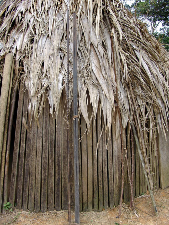 Рядом с хижинами ягуа построили небольшую малоку с двумя входами, ориентированными друг против друга. Индейцы говорят, что раньше малоку возводили гораздо больших размеров, и она имела четыре входа. Скромным размерам малоки есть свое объяснение. Как и у бора в Пебасе, этот общинный дом служит местным ягуа своеобразным клубом, в котором они встречают гостей или просто собираются вместе, а не постоянным жилищем. Ягуа предлагают нам развесить гамаки в малоке.