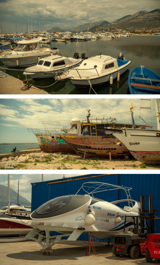 В портовом Баре многочисленные магазины одежды и обуви, привозимые, главным образом, из Италии. Мы сделали некоторую ревизию, местами удачную. Потом посетили порт с разнокалиберными яхтами, чуть не вступили в НАТО на ярмарке военных волонтёров. Мы с Андреем, как старые офицеры запаса ещё армии СССР, блюли за остальными.