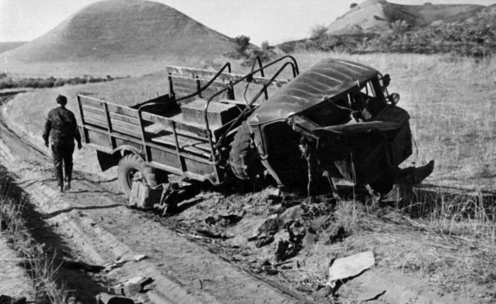 Подорванный на участке 6-й пограничной заставы Тахта-Базарского пограничного отряда автомобиль ЗИЛ-131. 3 ноября 1990 года