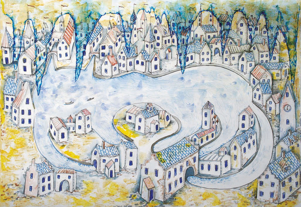 Итак, однажды зимним вечером Художница зажгла настольную лампу и принялась за рисунок, который ей надо было закончить к завтрашнему утру. Она рисовала сказочный город с домами-башенками, черепичными крышами с флюгерами и так увлеклась, что забыла о времени. Между тем и дом, и улица за окном давно погрузились в сон, и ничто не нарушало морозной тишины.