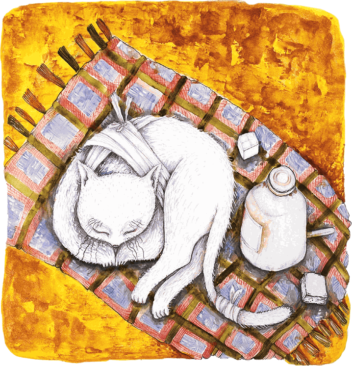 Дома Художница наполнила теплой водой ванну, опустила туда кота, согрела его, отмыла от крови и грязи, вытерла и закутала в махровое полотенце. Остаток ночи она не сомкнула глаз, а утром понесла кота к ветеринару.