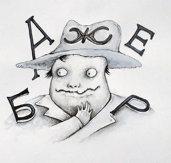 Художница закрыла глаза и сразу “увидела”, какие буквы ей не дают покоя. Это была твердая, как стена, и упрямая “Б”, зубастая и жадная “А”, липкая и равнодушная “Ж”, колючая, как спица, и хитрая “Е” и, наконец, буква “Р” – круглая и безжалостная, как катящееся громадное колесо.