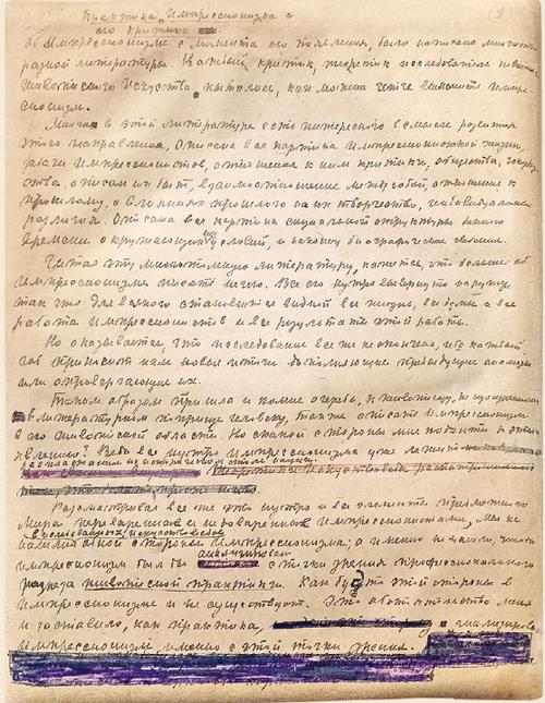 Казимир Малевич. Практика импрессионизма и его критика. Рукопись. Автограф. Российский государственный архив литературы и искусства. 1932