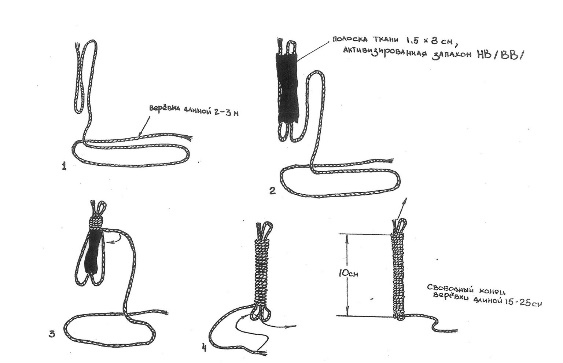 Обычно используют вторичные запахоносители, которые представляют собой полоски ткани 1.5х8см, нарезанные в большом количестве и настоянные в течение 1-2 суток в герметично закрытых емкостях (3-х литровые банки) с искомым веществом. Такие запахоносители хорошо сохраняют запах в течение 15-20 часов. После занятия они заменяются новыми. Ткань для вторичных запахоносителей необходимо подбирать шерстяную или полушерстяную, так как шерсть наиболее хорошо и быстро впитывает запах. В качестве материала для вторичных запахоносителей можно использовать вату. Веревочные апортировочные предметы, которые использовались на практике, готовились ночью накануне занятия. В каждый вплеталась одна полоска активизированной запахом НВ ткани. После занятия предметы расплетались, стирались с мылом, высушивались в течение суток. Для того чтобы не путать веревки с разными запахами, на обоих концах шнуров цветными нитками были сделаны метки. При плетении предмета оставляют свободный конец веревки длиной 20-30см.