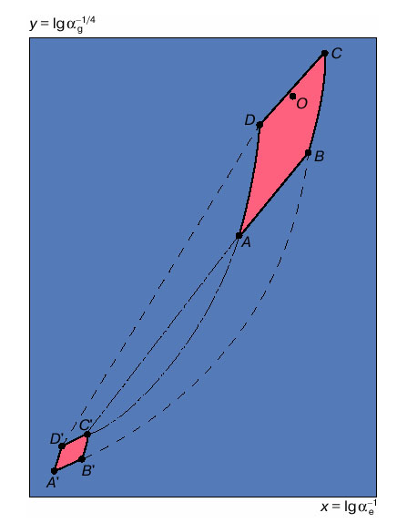 Области, где появляются необходимые условия для возникновения жизни (точка О соответствует нашей Вселенной). Рисунок заимствован из работы [36].
