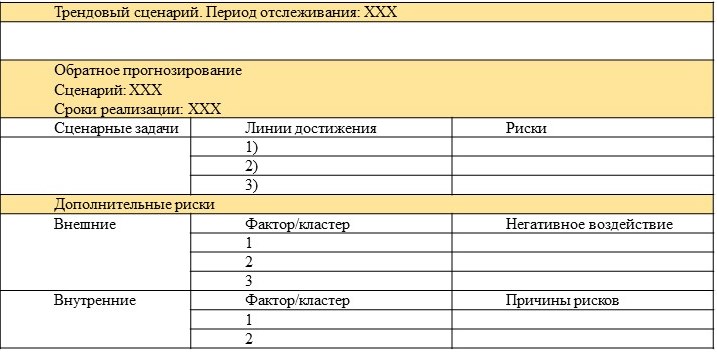 В качестве примера возьмем сценарий «Полная победа». В данной ситуации в качестве направлений потенциальных «диверсий» мы можем рассматривать линии достижений сценарных целей (см. таблицу 8). При этом возникающие риски описываются нами как возможная реакция оппонентов на действия «нашего» субъекта.