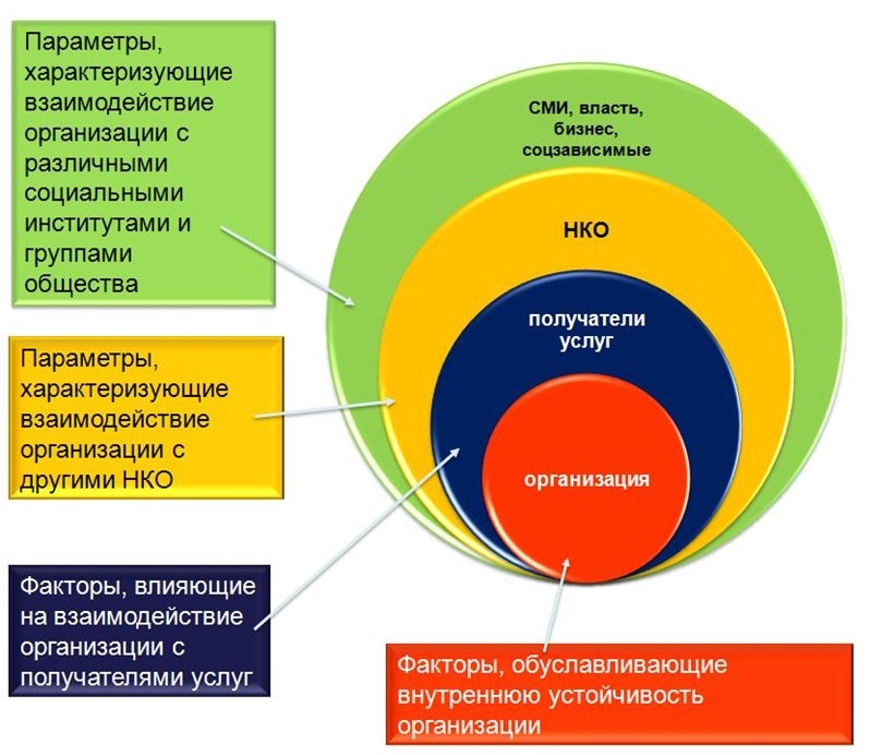 Цель любой НКО состоит в решении социальной проблемы. Это предполагает, что организация, используя внутренний потенциал, воздействует на свою социальную среду для достижения (краткосрочных и долгосрочных) последствий, ведущих к исчезновению проблемы. При этом, возможность реализации данной цели будет зависеть как от внутренней устойчивости организации, так и от наличия сбалансированной системы ее отношений с внешней средой. При этом, сбалансированность проявляется в адекватной реакции менеджмента организации на постоянное изменение внешнего окружения.
