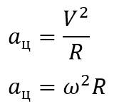 Центростремительное ускорение можно выразить и через линейную скорость, и через угловую: