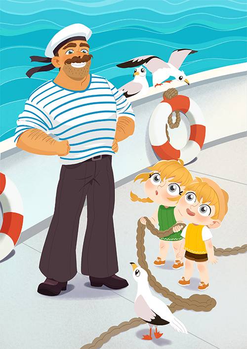 Никиас приободрился и кивнул. А спустя несколько минут мама Талия, в обнимку с детьми, с интересом изучала паром. Конечно, ведь мама – это не папа, и в строении паромов совершенно не разбирается. Поэтому ребята наперебой рассказывали и показывали, где что находится. Познакомили с веселым моряком, охраняющим самый важный канат, попытались узнать у него про таинственные корабельные трюмы и про того, кто управляет домом-паромом. Но моряк только смеялся в ответ и лихо крутил усы.