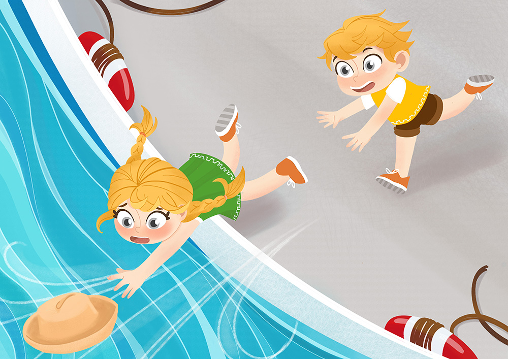 Наперегонки дети бросились за ней вдогонку. Но та, поддавшись стремительному морскому бризу, катилась все ближе и ближе к краю палубы. Того и гляди ее сдует в воды Средиземного моря.