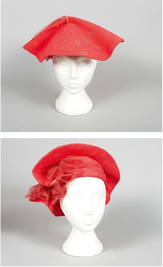 Then, in 1998, although I wasn’t yet in charge of designing The Queen’s wardrobe, I did assist in choosing appropriate outfits for each occasion. We were planning for Her Majesty’s upcoming tour of Malaysia, where she would be closing the Commonwealth Games in Kuala Lumpur. As the weather is so warm over there, it was decided that Her Majesty would wear a dress but no jacket or coat, and she chose a vibrant deep coral for the outfit and matching hat. Designs were drawn up and a brief was sent to the milliner. Sketches were done for the hat and, due to Her Majesty’s busy schedule, the hat was delivered at the last minute. Her Majesty didn’t have a chance to try it on and I didn’t have a chance to look it over before it was packed up.