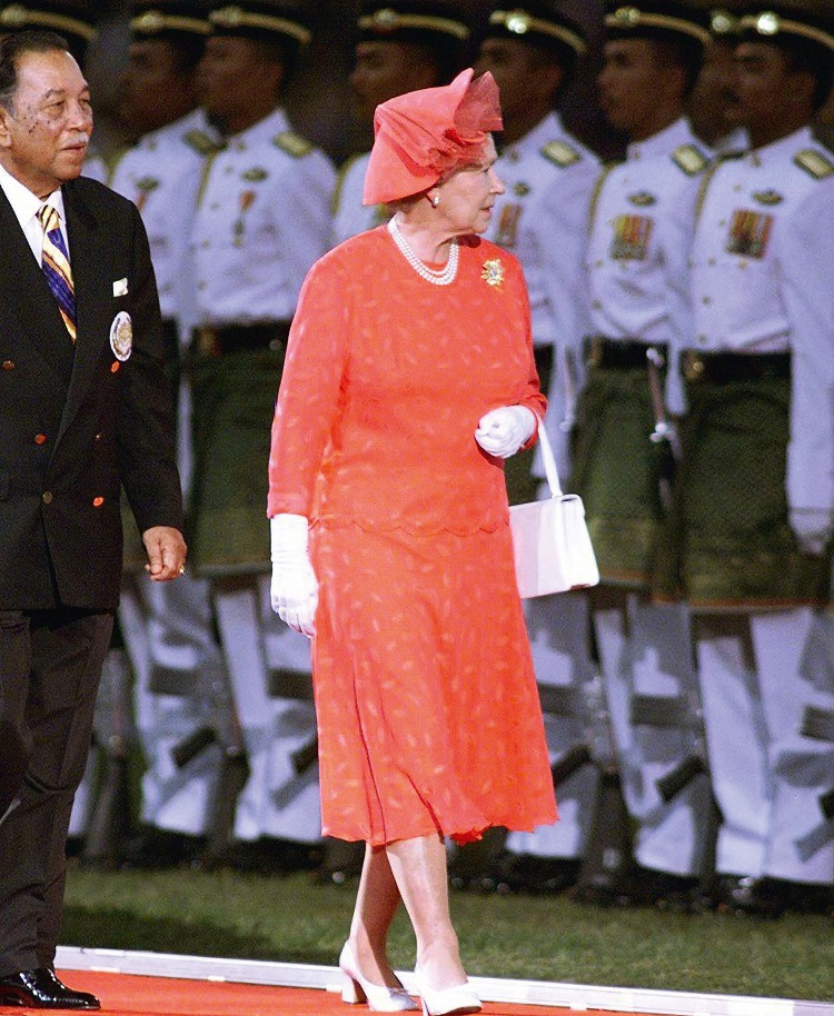 The Queen and King Yang Dipertuan Agong of Malaysia during the Commonwealth Games in Kuala Lumpur in 1998.