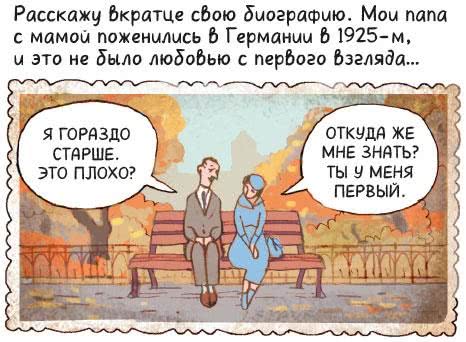 Она взяла шерстяной шарф и положила его на пол, чтобы яйцо выпало на него. Потом она села на корточки и начала тужиться. При этом она закудахтала, но яйцо не появилось. В конце концов, после очень долгого сидения, что-то выскочило – но не яйцо, а колбаска. Наконец Ева выросла и поняла, что женщины не откладывают яйца.