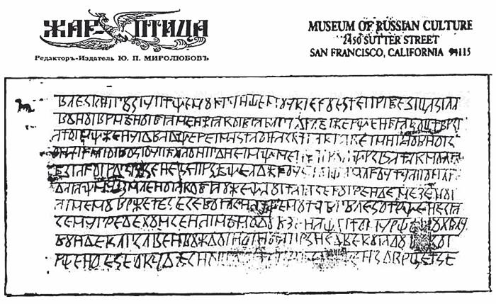 А далее начинается путаница. В следующем номере журнала «Жар-птица» (декабрь 1953 года) некие мелкие разрозненные тексты действительно были опубликованы. Но это были не фотографии дощечек и даже не прорисовки, выполненные Миролюбовым, – это были просто отрывки из переводов, якобы сделанных к тому времени.
