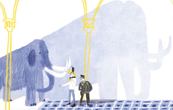 Папа обещает хмурому, что мы будем очень осторожны. А мне очень хочется увидеть слона: где же он? Его я ещё ни разу не трогала. Папа объясняет, что живого слона можно увидеть только в цирке или в зоопарке. А «слон в посудной лавке» – это просто так неуклюжего человека называют. Потому что настоящий слон – такое большое животное! Если бы он смог зайти в музей, то наверняка бы всё тут порушил.