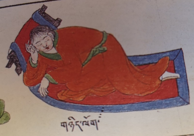 Родители никак не могли выдать дочь замуж из-за ее припадков сна. Отдали одному купцу, тот возвратил ее. Посватали за благородного брахмана, он отказался от нее еще во время свадьбы.