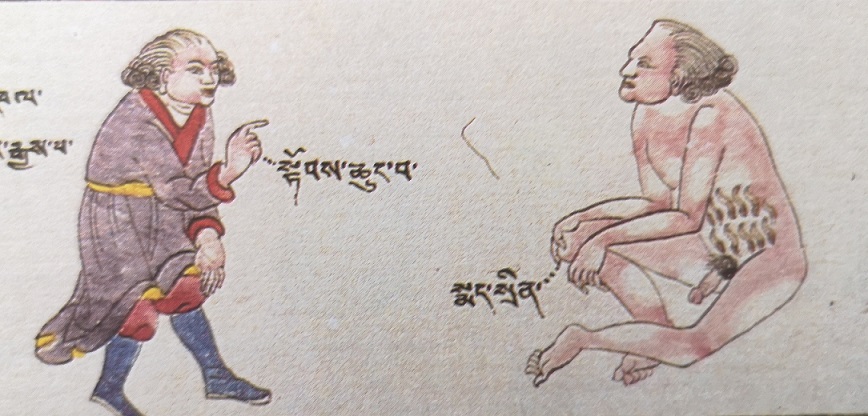 Дело в том, что лекарь Чернышраман был злокозненным демоном, пришедшим из далекого края, чтобы изничтожить народ той страны. Он намеренно соединял в пары людей, имевших обоюдную несовместимость, чтобы они теряли интерес к продолжению рода. Некоторым мешали длинные ногти, которые цеплялись за пышные волосы супруга. Иные обладали неимоверными животами, препятствовавшими любви. Третьи болели болезнью чихания, которая обрывала любовные порывы партнера.