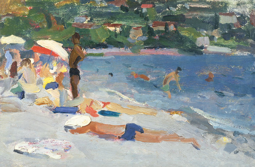 Пляж в Анталии. Борис Михайлович идет с полотенцем через плечо. Вдруг останавливается у шезлонга.
