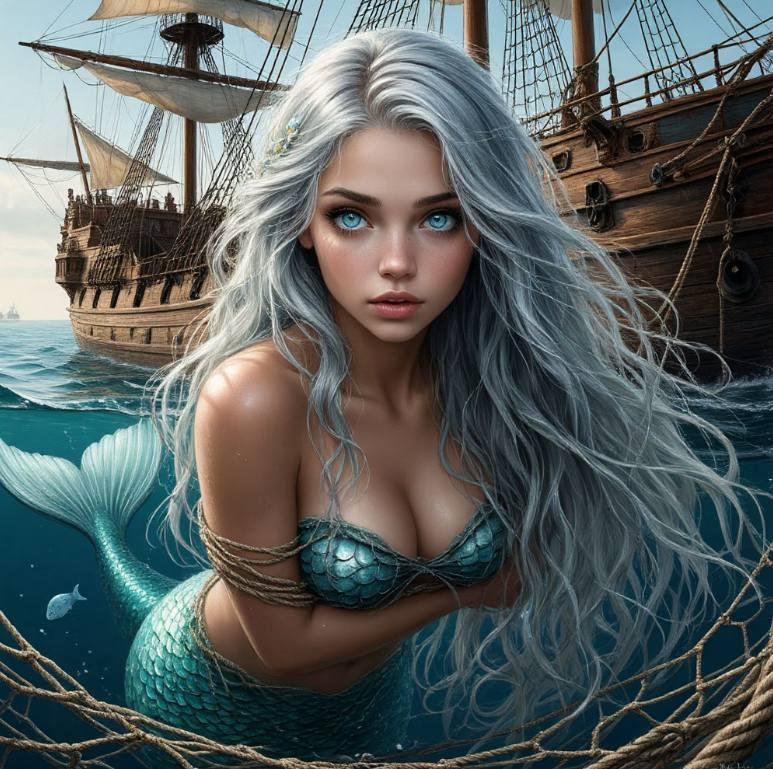 Кит нахмурился и, таки взяв предмет из рук старпома, направил его на торговое судно, внимательно осмотрев его палубу. Он не увидел ничего подозрительного, пока взгляд не зацепился за рыбацкие сети, внутри которых находилась… обнажённая девушка, тщетно пытавшаяся одной рукой прикрыть наготу, а второй выбраться из ловушки, в то время как окружившие её моряки стояли с довольными рожами и бесстыдно глазели на неё.