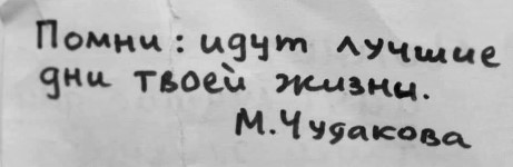 Так вот, я поняла, что силы и время, пошедшие на написание, представляют собой 5 % от общего времени, пошедшего на то, чтобы его опубликовать. Вот такой был КПД. Поэтому, конечно, нашу жизнь отнимали. Вот скорей лечь, забыться, и утром опять снова всё. А я очень ценила и ценю текущую жизнь. Поэтому я решила помогать себе и своей семье этим лозунгом. И дома он висит сейчас. У нас дома. “Помни (двоеточие): идут лучшие дни твоей жизни”».