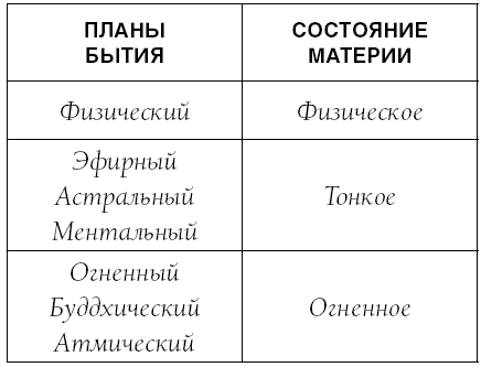 Вот схема, которая поможет нам представить себе планы бытия и состояния материи, характерные для них.