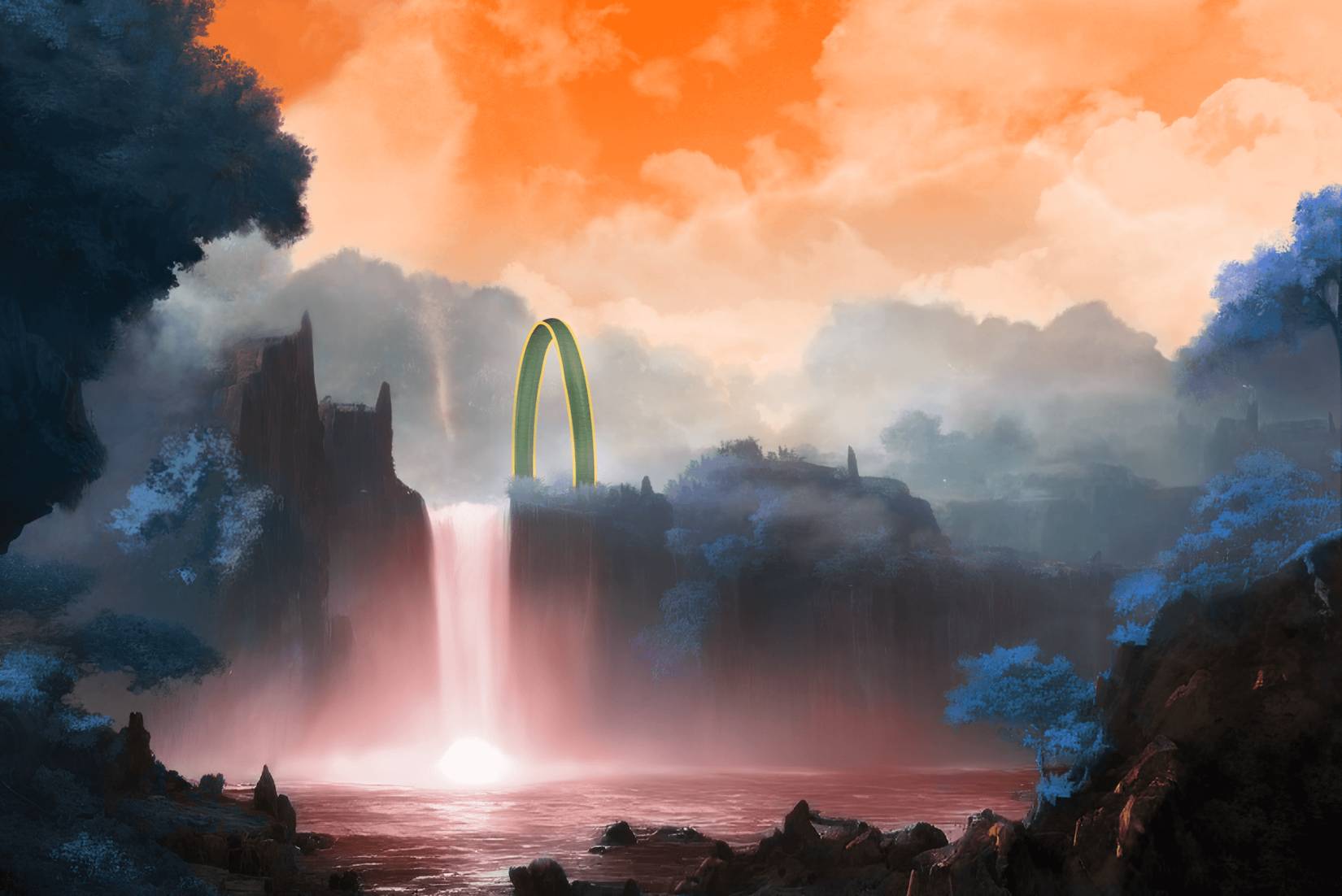 Бледно-розовые водяные потоки с ревом срывались в пропасть. Ветер разносил холодные брызги в разные стороны. Алиса застыла на несколько секунд, любуясь невероятным зрелищем. А потом вновь обратилась к Калау: