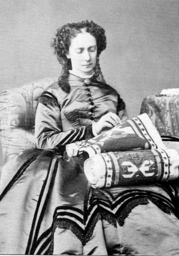 Мария Александровна за вязанием. Справа сын Алексей, слева сын Сергей. 1870 год