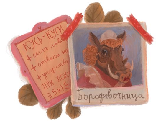 Посидели немного, она сама же съела весь мёд, который мне принесла, и ушла. А спустя минуту – стук в дверь. Я подумала: она, наверное, вернулась за пустой банкой, – но это оказалась не медоедка, а Бородавочница, уличная торговка.