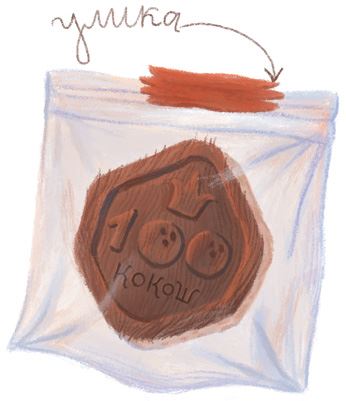 Бородавочница чуть не просверлила взглядом дыру в моём камушке-удостоверении (это было бы в общем даже удобно, я тогда могла бы повесить его на шею на верёвочке из конского волоса), потом порылась в одном из отделений обширного кармана на фартуке и продемонстрировала мне фальшивую монету номиналом в сто кокош.