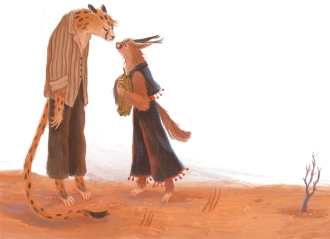 Я подхожу к раздражённому аисту-перевозчику. Перед ним расстелена застиранная пелёнка с траурным кантиком – она для меня, и горячий ветер саванны успел припорошить её горячим песком, пока аист и стоящие чуть поодаль медоедка Медея и гепард Геп, мои провожающие, меня дожидались.