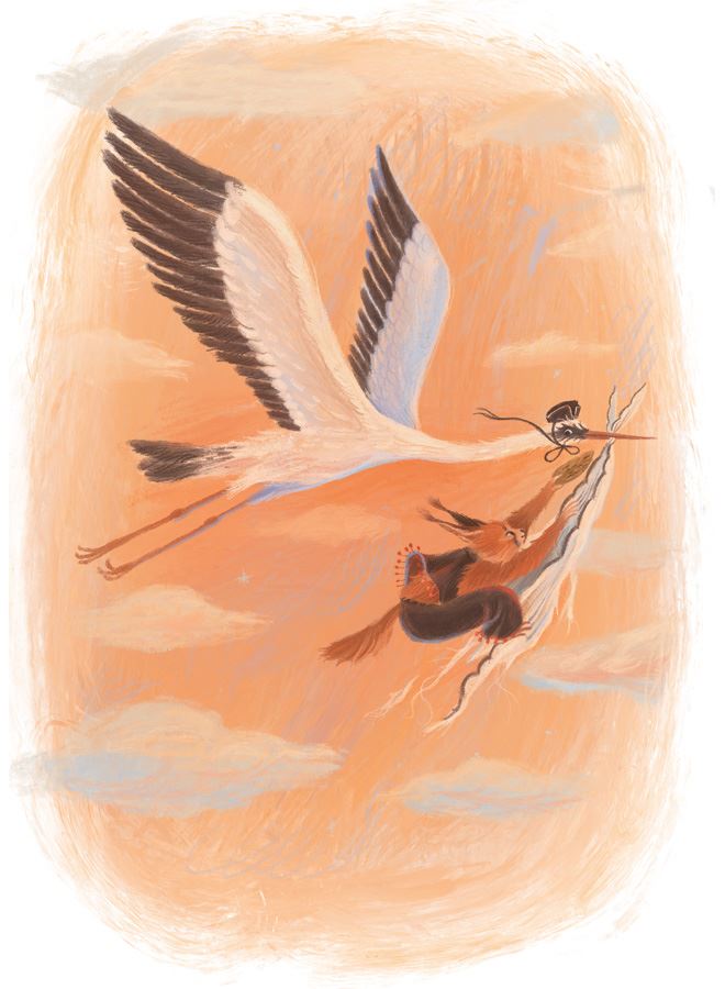 Как бы ни было, я выпустила когти и принялась изнутри царапать пелёнку. В конце концов мне удалось её распороть, и я повисла на куске ткани, раскачиваясь из стороны в сторону над острыми пиками скал, и скомандовала шокированному аисту-перевозчику: