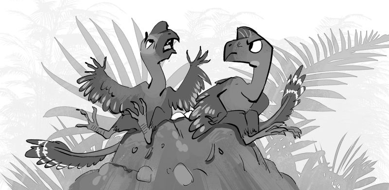 Они сидят в гнезде с яйцами. Их зовут Ови и Раптор. В их семье всех мальчиков зовут Ови или Раптор, фантазия – не сильная сторона семьи Овираптор. А девочки у Овирапторов уже давно почему-то не родятся. Интересно, будут ли девчонки в этой кладке? Или опять одни пацаны?