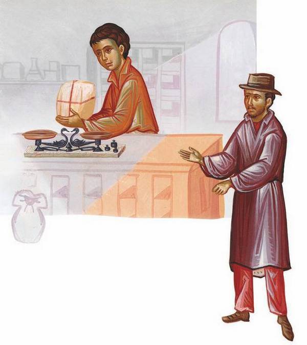 – Моё почтение, – приветствовал он хозяина, господина Эврипи́диса. – Ну и холод! Помню, такой же мороз ударил в начале ноября лет сорок назад. Мы с братом, совсем ещё мальчишки, выбежали спозаранку полюбоваться инеем и увидели на земле старика-нищего. Бедняга был босой и замёрз насмерть.