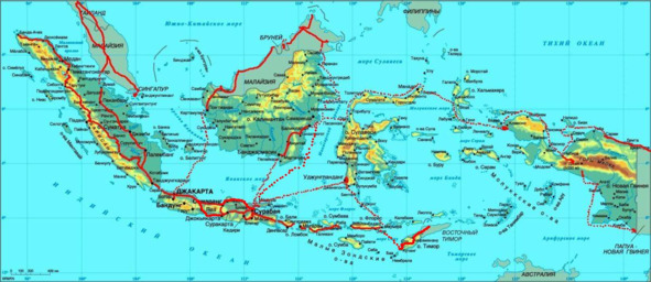Маршруты, пройденные по Индонезии лично мной (автором книги)