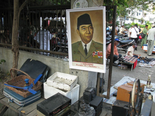 Портрет Сукарно, на барахолке с другими малоценными товарами