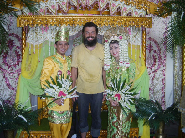 На свадьбе (если это мусульманская свадьба) не пьют алкоголь, «горько» не кричат. Музыканты есть обычно, они что-то играют постоянно. Стульев обычно не хватает, кушают стоя, подходя самостоятельно к пунктам выдачи блюд. Баксо, гадо-гадо, рис с разными добавками, мороженое и газировка, порезанные фрукты, разные другие съедобные вещи бывают на свадьбах – подходите и сами себе берёте сколько хотите, а персонал помогает и подготавливает новые запасы пищи. Параллельно в центре зала пришедшие, по нескольку человек, фотографируются с женихом и невестой с утра до обеда или до вечера.
