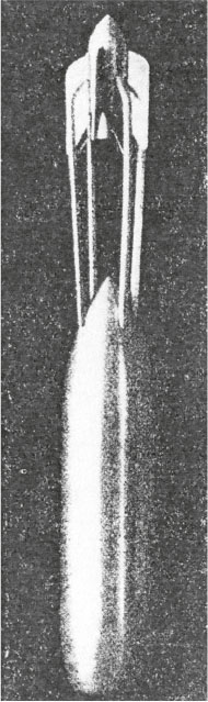 Возникали проблемы и другого рода. Требовалось проверить аэродинамические характеристики ракеты. Обычно это делается путем продувки в аэродинамической трубе, но такой эксперимент был очень дорогим и отнял бы много времени. Оберт решил, что качественное представление может дать опыт, сводящийся к наблюдению характера падения модели с большой высоты. Была найдена соответствующая фабричная труба и с нее сброшена деревянная модель ракеты – ее даже удалось сфотографировать в этот момент. «Рекламщики» продемонстрировали смекалку: перевернули фотографию и, сделав таким образом падающую ракету взлетающей, сообщили о «первом экспериментальном старте ракеты Оберта».