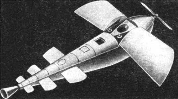Почему именно ракетоплан, а не большая баллистическая ракета? Объяснение простое – создание больших ракет в ту пору было делом совершенно новым, и любой, кто начинал заниматься серьезным проектированием в этой области, наталкивался на ряд проблем. Одна из серьезнейших – как обеспечить стабильность полета ракеты и ее управляемость на всех этапах? Если в момент старта траекторию движения задавал пусковой станок с направляющими, а в дальнейшем ее поддерживали хвостовые стабилизаторы, то как быть с маневрированием в атмосфере и за ее пределами? Как обеспечить автоматическое регулирование тяги двигателя на различных режимах полета? Ракетоплан, казалось, решал большую часть этих проблем – управляемость обеспечивали крылья и их механизация; тягу двигателя мог регулировать сидящий в герметичной кабине пилот. Кроме того, в авиации уже был накоплен значительный опыт по созданию аппаратов тяжелее воздуха, и этим опытом не стоило пренебрегать.
