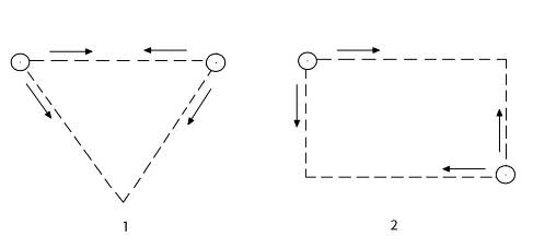 Рис. 7. Выпиливание треугольной (1) и прямоугольной (2) майны.
