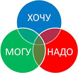 Вам наверняка знакома схема с пересечением кругов: могу, хочу, надо. Иногда, описывая некую функциональную сферу деятельности, эти круги называют немного по-другому: умею, люблю, делаю. Консультанты по бизнесу говорят о компетенциях, удовольствии и вознаграждении. На самом деле все они говорят об одном и том же: хочу и могу – это про наш внутренний мир, а надо – про наше взаимодействие с внешним миром. Их несовпадения – это основа невротических состояний, в которых большинство из нас пребывает почти всегда.