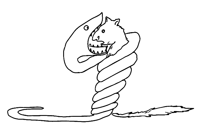 On disait dans le livre: «Les serpents boas avalent leur proie tout entière, sans la mâcher. Ensuite ils ne peuvent plus bouger et ils dorment pendant les six mois de leur digestion.»