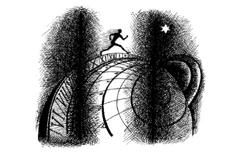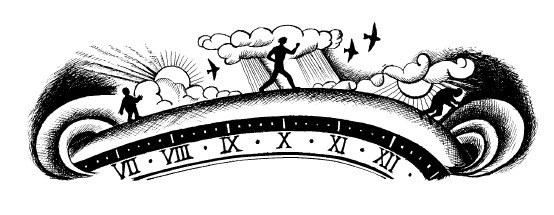 Древние греки придумали еще один образ времени: лысый человек, бегущий по лезвию бритвы. Его нельзя догнать и схватить за волосы – так и время нельзя догнать и вернуть. Лезвие бритвы означает необратимость времени, его одномерность: бегущий по нему человек не может свернуть в сторону. Но здесь и еще один смысл: условность самого времени. Прошлого нет, так как оно миновало. Из реальности оно превратилось в нечто лишь мыслимое. Будущего также объективно нет, оно не наступило, оно всё – в области предположений, в некой потенции бытия, опять-таки – в области мыслимого. Реально только настоящее, но и оно не более чем грань между прошлым и будущим, тонкая, как острие бритвы.