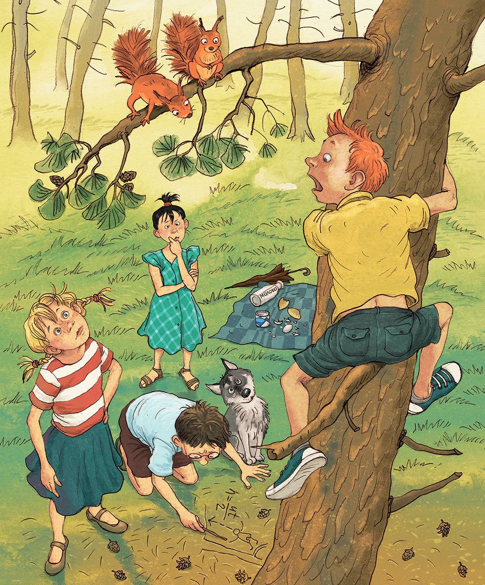 Надо было посмотреть, далеко ли ещё Синий лес, поэтому Васька полез на самую высокую сосну. Он у нас лучший верхолаз по деревьям.