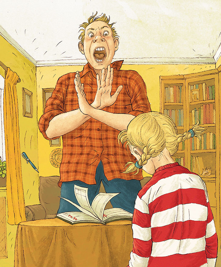 – Скажи, что на тебя напали грабители и отобрали дневник… Нет, не поверят. Или поспорь с папой, сможет ли он расписаться с закрытыми глазами… Нет, опять не подойдёт. Или давай я пока дам тебе свой дневник?