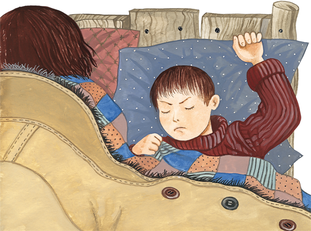 Мать швырнула пружину за кровать. При свете луны она заглянула в лицо Геку и поняла, что ему снится тревожный сон.