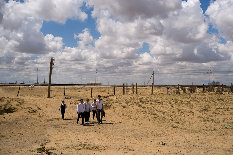 На железной дороге встречаются полустанки со школьниками, возвращающимися из школы. Вообще, дети в Казахстане и Узбекистане отдельная тема. Все лучшее детям! Каким бы бедным ни был поселок посреди пустыни и неказистыми там строения, дети всегда одеты как на парад. Аккуратно, чисто, белый верх, черный низ, а школа или колледж большое и самое главное здание, окруженное парком.