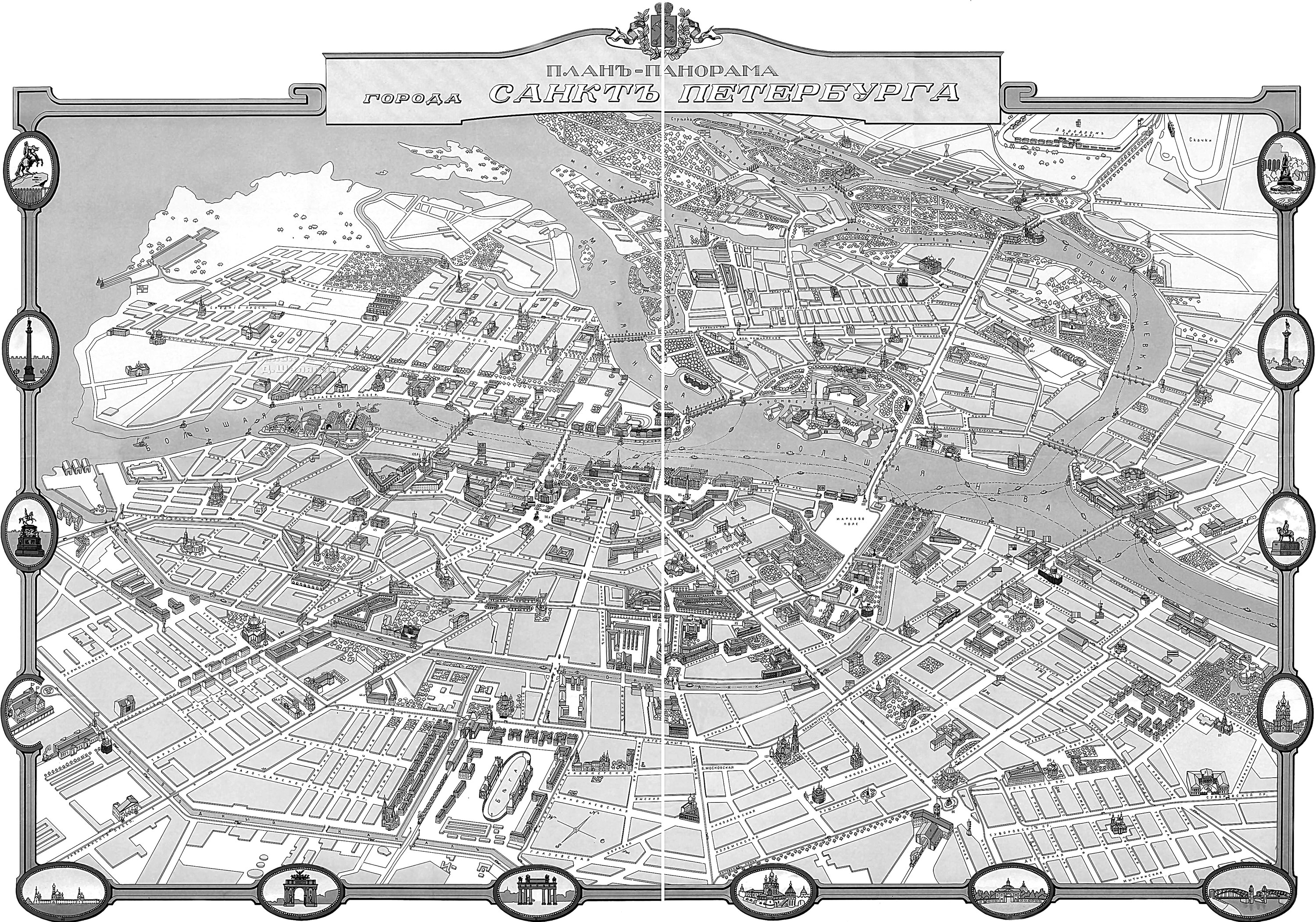 Площади, о которых мы рассказываем в этой книге, ты найдёшь на плане-панораме Санкт-Петербурга, напечатанном в 1913 году в картографическом заведении Ильина. Обрати внимание на названия площадей и улиц – не все они сохранились такими до нашего времени: некоторые исчезли вовсе, иные заменены.