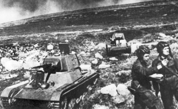 Комиссар танкового батальона товарищ Коллеров проверяет готовность «Т-40» к бою