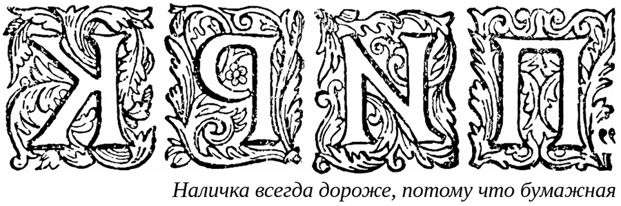 Больше тридцати лет назад с моим дедом (как, впрочем, и со многими другими из его поколения) произошла поучительная история. Скопив за свою жизнь приличное состояние, он собирался достойно пожить на пенсии, однако в 1992 году гиперинфляция обесценила его сбережения. Этот урок слишком суров, чтобы проходить его в собственной жизни. С тех пор я порядочно размышлял о природе денег. Дело даже дошло до авантюры с регистрацией патента. Но потом моим намерением стало изменить порядок вещей пусть не лично для себя, так хотя бы сразу для всех. И если после прочтения ваши представления несколько расширятся, моя цель будет достигнута, поскольку обсуждаемый предмет, в сущности, только в мыслях и существует.