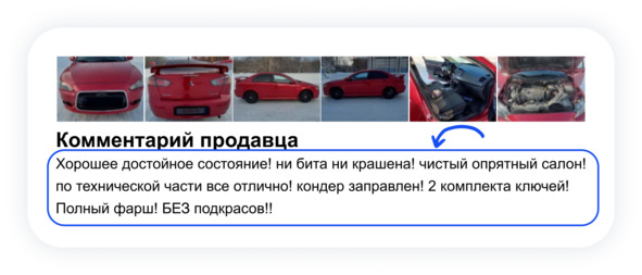 Текст. Перекупщики часто выражаются по-простому. При поиске машины не раз встретите фразы, типа «без подкрасов», «европейка», «полный фарш». Частники, наоборот, стараются следить за культурой речи.